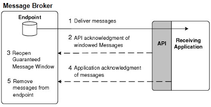 An application can adjust the windowed acknowledgments by changing the default acknowledgment timer and threshold parameters set through the Flow properties (refer to Important Flow (Message Consumer) Properties). Changing these defaults is not usually required and will change the performance characteristics of a Flow.