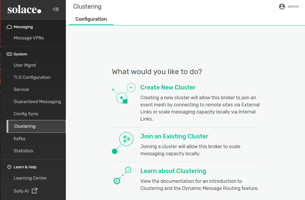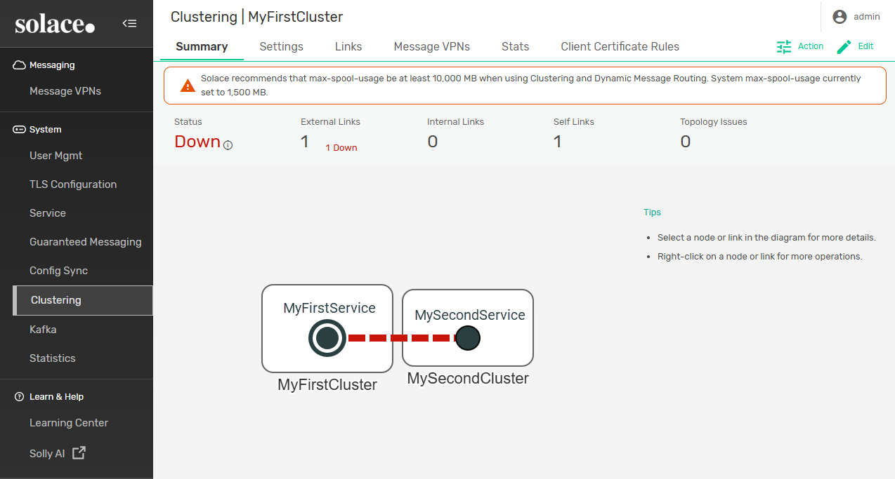 You have now created a cluster for your event broker. You can see your cluster in the Summary tab. If you want to add more nodes to the cluster, see Adding a Node to a Cluster.