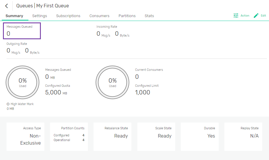toggle to disable incoming messages. - Wait for all outstanding messages from all partitions of the queue to be fully delivered; that is, the Messages Queued value for the queue is zero.