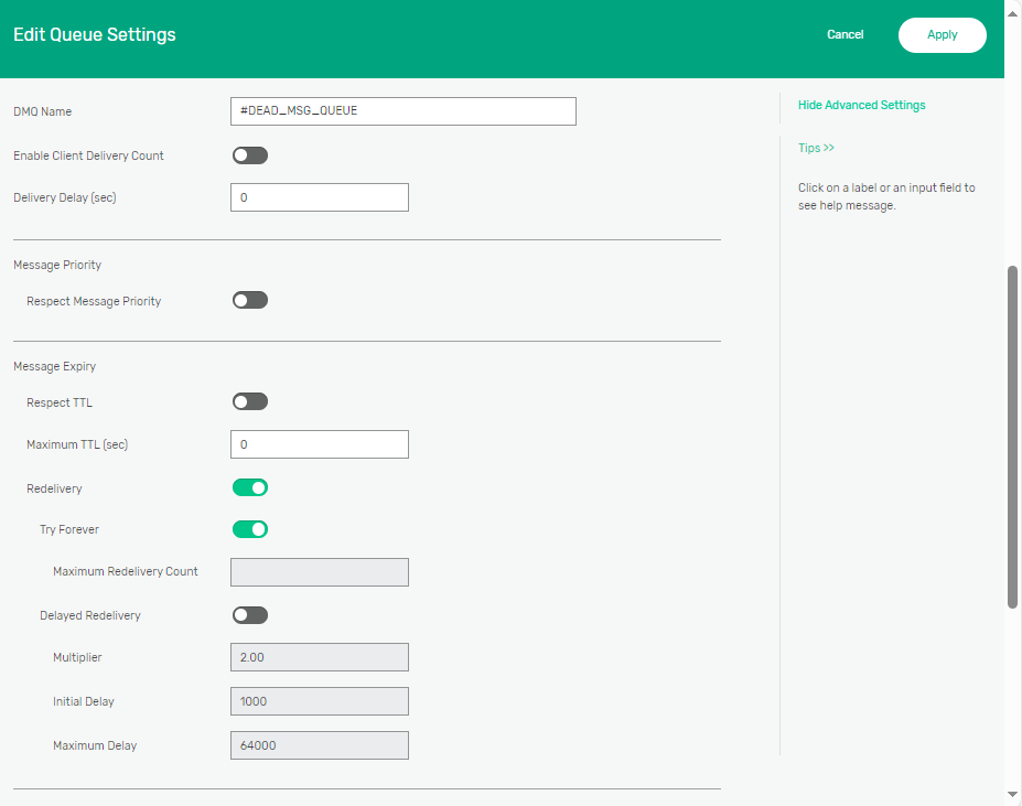 - (Optional) To set a delivery delay, enter a value in the Delivery Delay (sec) field.