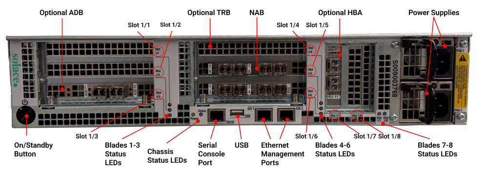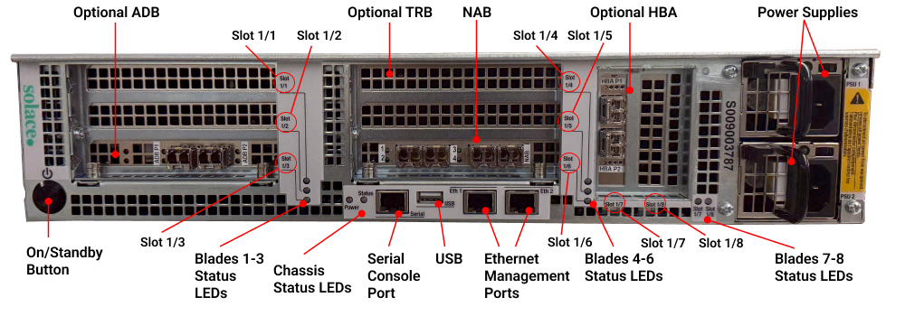 All connections for Solace 3560s are located at the rear of the device chassis.
