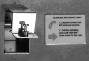 - Use a Philips No. 2 screwdriver to undo the captive fastener for each of the two latch pin covers, and then lift the covers to expose the latching pins.