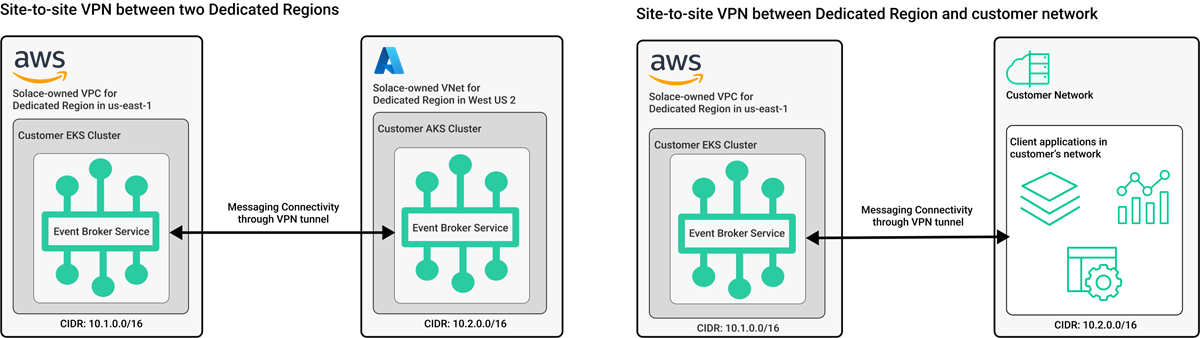 Site-to-site VPN is available for every cloud provider Solace deploys Dedicated Clusters to: