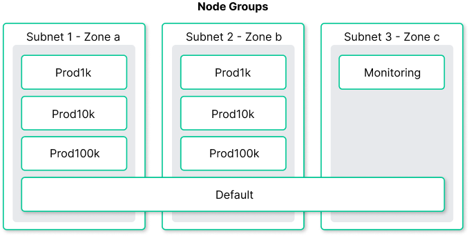 The Kubernetes cluster autoscaler must use two node groups. The node groups can be configured to start from zero instances, which means that it has a full set of node groups for each scaling tier without requiring that instances run in each.