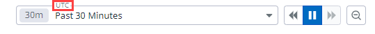 - Time Filters—You can filter and traverse through historical data based on a selected time interval of interest. You can also reference the field to determine the time zone of the information you're viewing: UTC (Universal Coordinated Time) appears above the field if data is in the UTC time zone, otherwise the information is in your default time zone. For more information, see Time filters