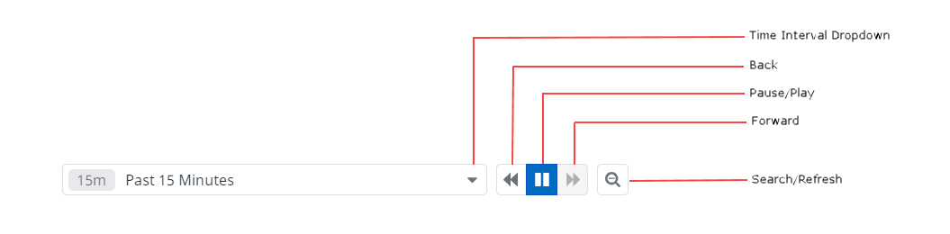 (Back): Scroll back to the previous time interval and refresh the dashboard with that information.