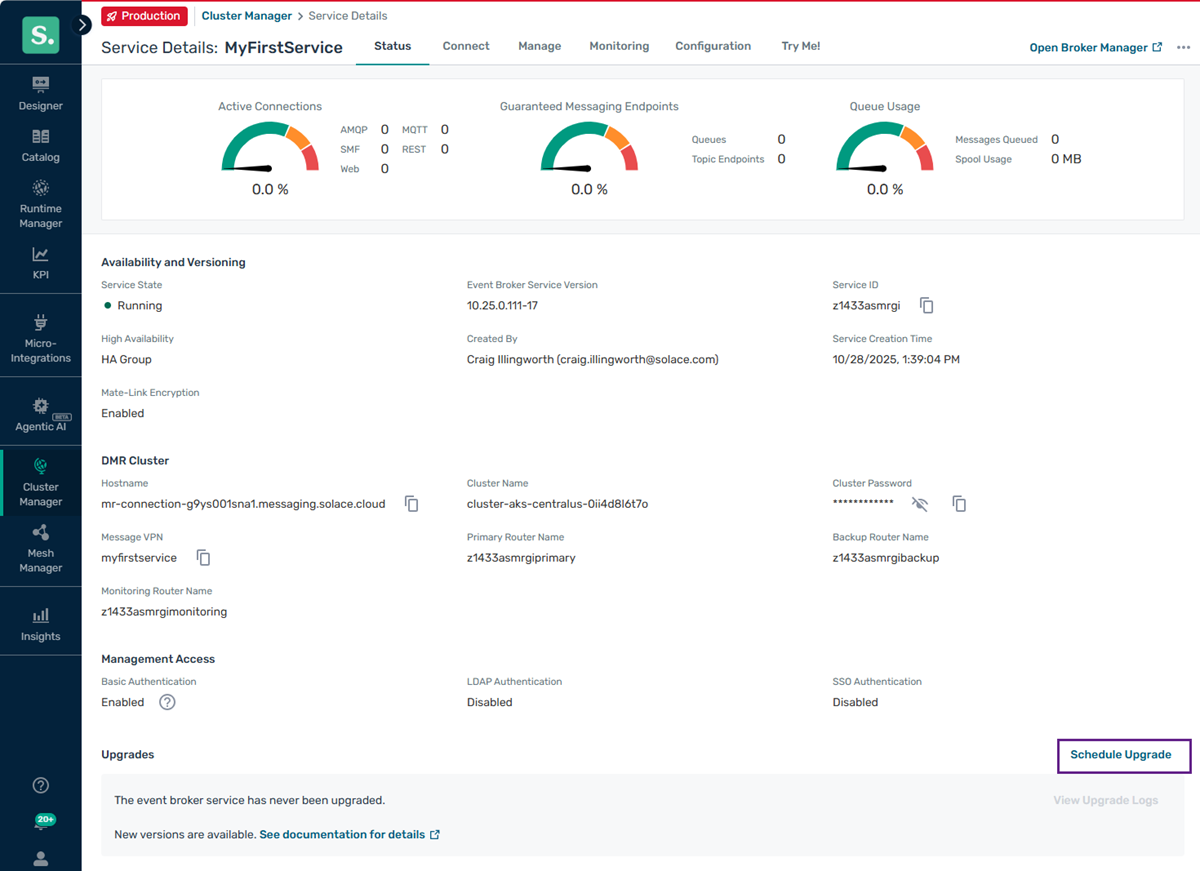 Performing Self-Serve Upgrades for an Event Broker Service Using the Cloud Console