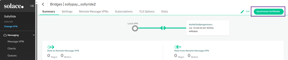 5. In Broker Manager, click Bridges in the navigation bar and select the bridge with the event broker service whose client certificate synchronization you want to check.
