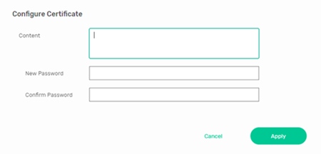 8. Enter the your client certificate into the Content field and enter a password if required, then click Apply.