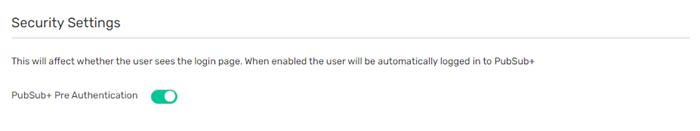 3. In the Security Settings section click the Solace Pre Authentication toggle to disable pre-authentication.