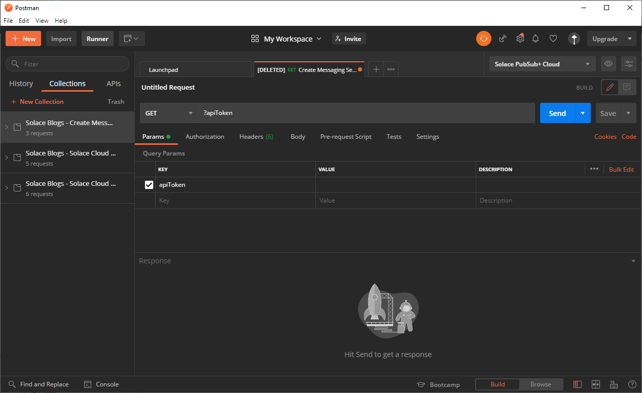 Now you have an API token and have set up Postman to use it. You can now use Postman to learn how to use the Solace Cloud REST API.