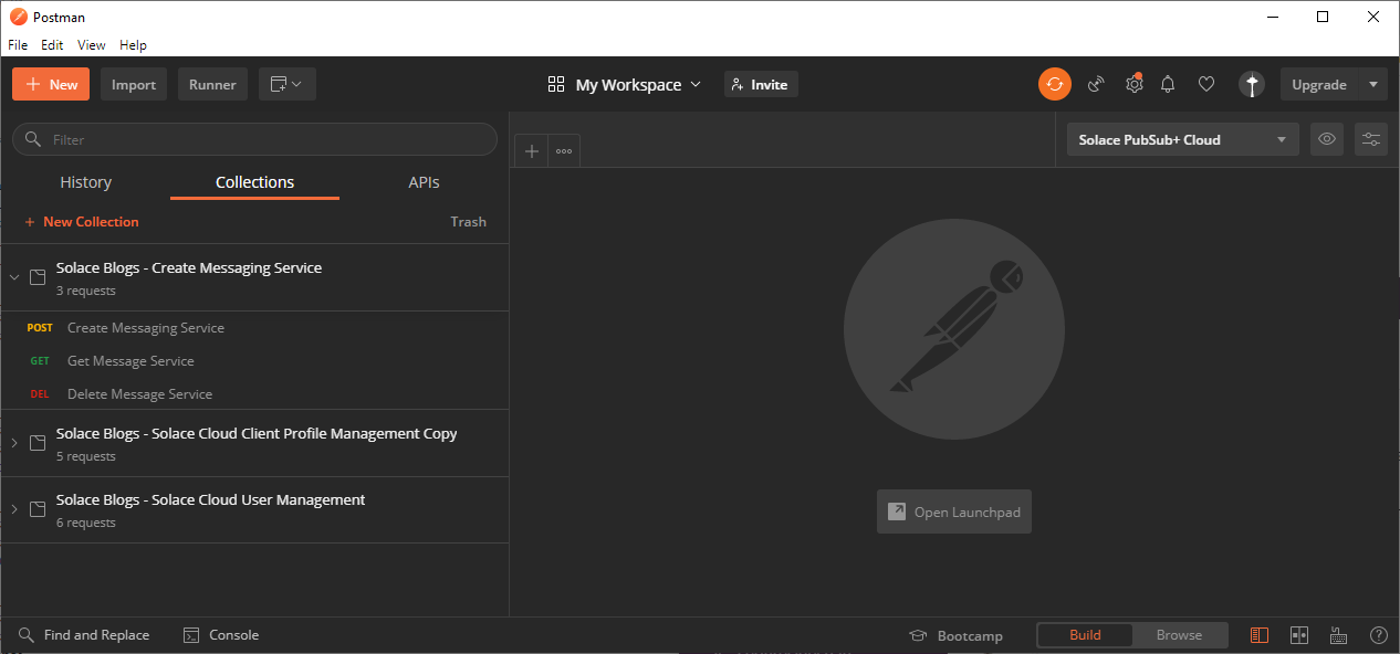 Alternatively, you can use development tools (such as Postman or curl) to learn about how to use the Solace Cloud REST API . Our subsequent tutorials use Postman. For more information, see Using an API Token with Postman.