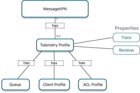 #telemetry-<profileName>, that controls certain configuration settings for telemetry receivers (or simply receivers). Receivers are clients that bind to the telemetry queue and consume trace messages. To obtain the receiver configuration from the telemetry profile, this client profile must be assigned to the client username or authorization group object the receiver uses for authorization. An attempt to bind to the telemetry queue from a client using a different client profile will fail. Note that the telemetry ACL profile is the object that explicitly allows binding to the telemetry queue, but an additional check is made to ensure the ACL profile name and client profile name match in order to prevent accidental misconfiguration. - an ACL profile, also named