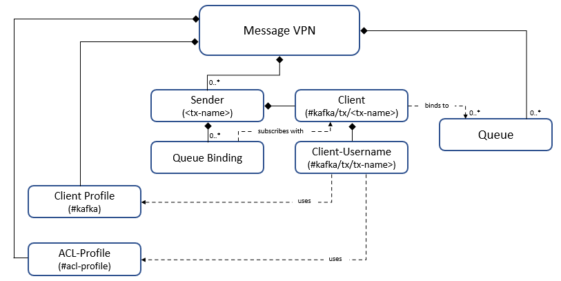 #kafka, which is needed for all Kafka senders and receivers in the Message VPN. This profile is created when the first Kafka sender or receiver is created, and removed with the last Kafka sender or receiver.