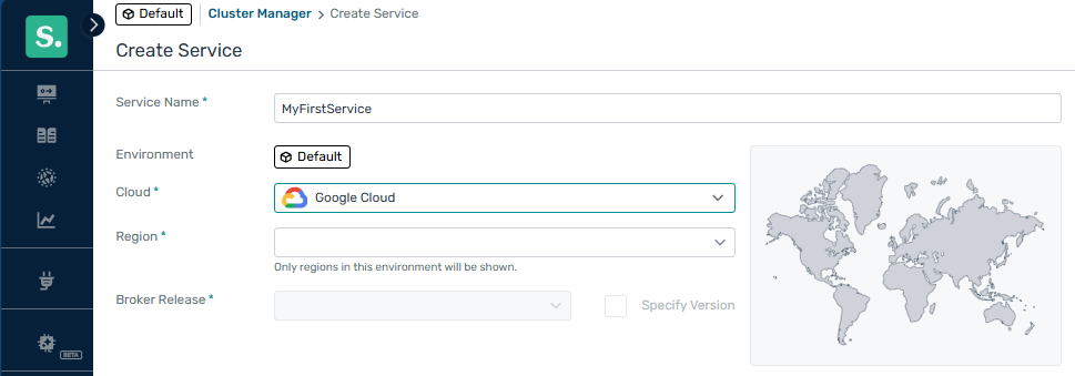 8. Leave the Broker Release field set to the default, giving you the most recent Long Term Support release. Leave the Specify Version checkbox unselected.