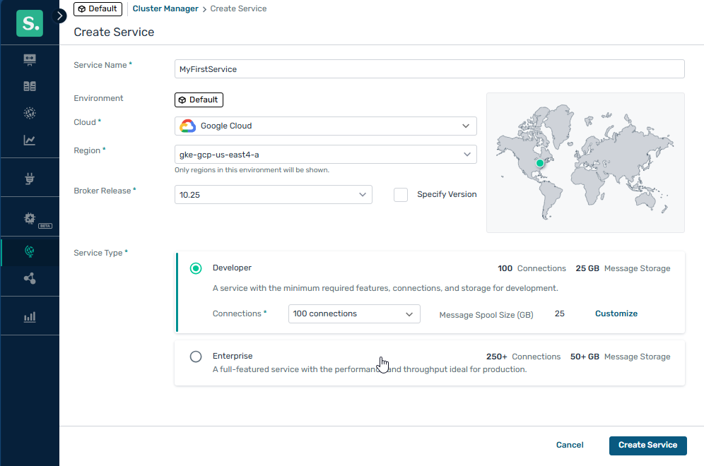 You can create a free Solace Cloud account and then create your first event broker service from the Cloud Console.