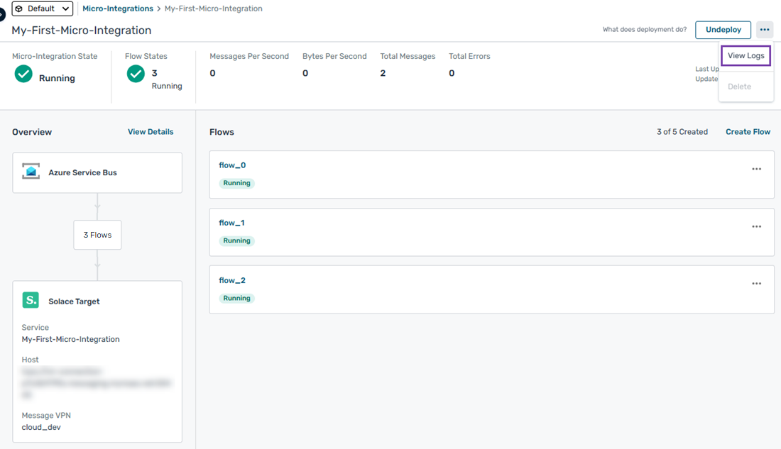 The View Logs option is available only if the Micro-Integration has been deployed at least once.