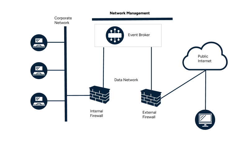 We recommend that you do not place the event broker directly on the public network; it should be placed behind the external firewalls.
