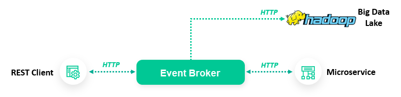 Using a Solace event broker to transport the HTTP requests and responses allows other services or event listeners to also receive the messages without any changes to the REST client or REST service providers. This allows you to introduce response time analytics, data capture for testing using real data, fault analysis and so on without recoding the client applications.