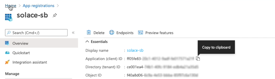 You can get the client ID from the Azure console in the Overview section. The client ID is the application ID which an Azure Service Bus has registered.
