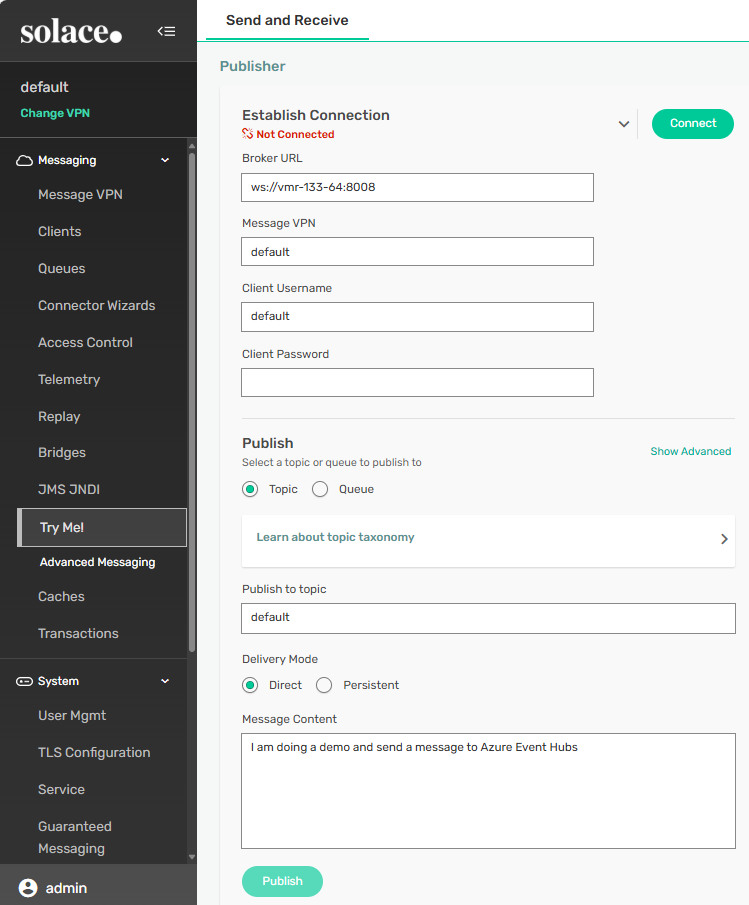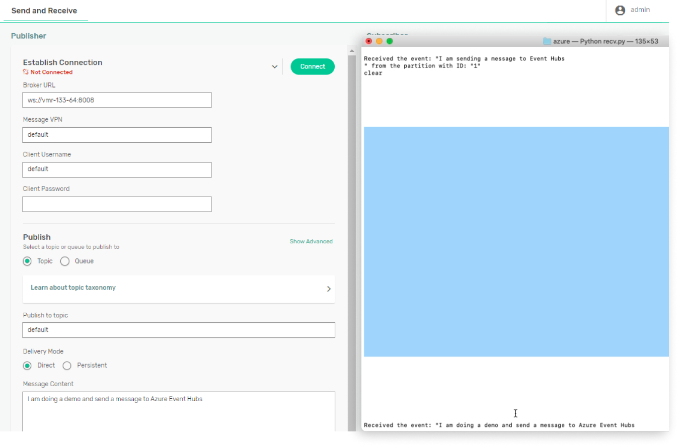 - Send messages to Azure Event Hubs using the Try Me! functionality built into Broker Manager.