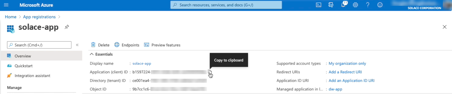 You can get the client ID from the Azure console in the Overview section. The client ID is the application ID which an Azure Event Hub has registered.